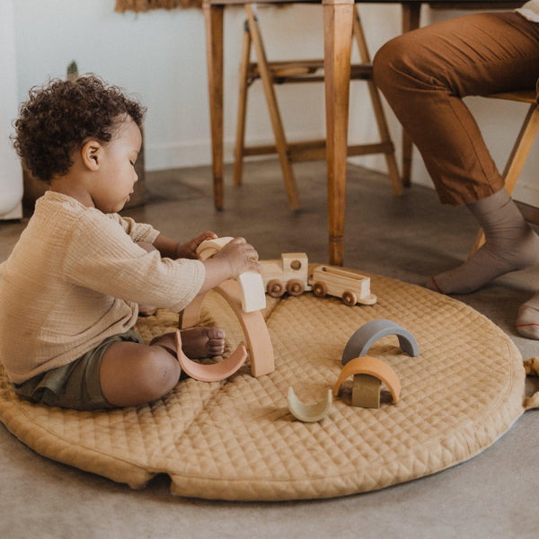 Your Hugomat will include a removable, machine washable quilted cover, one set of natural latex foam inserts, and for a limited time *gifted with every order are a set of removable, waterproof insert covers ($30 value) for an extra layer of protection against leaks or spills. The waterproof bamboo jacquard fabric is slightly padded, adding a little extra plush to every mat. All together, it’s heavenly.