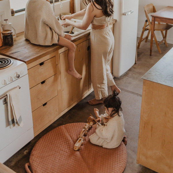 Your Hugomat will include a removable, machine washable quilted cover, one set of natural latex foam inserts, and for a limited time *gifted with every order are a set of removable, waterproof insert covers ($30 value) for an extra layer of protection against leaks or spills. The waterproof bamboo jacquard fabric is slightly padded, adding a little extra plush to every mat. All together, it’s heavenly.